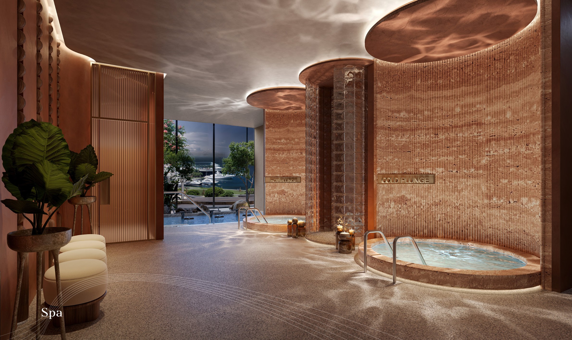 - Spa complet : sauna, hammam, aromathérapie, douches sensorielles, jacuzzi chaud/froid